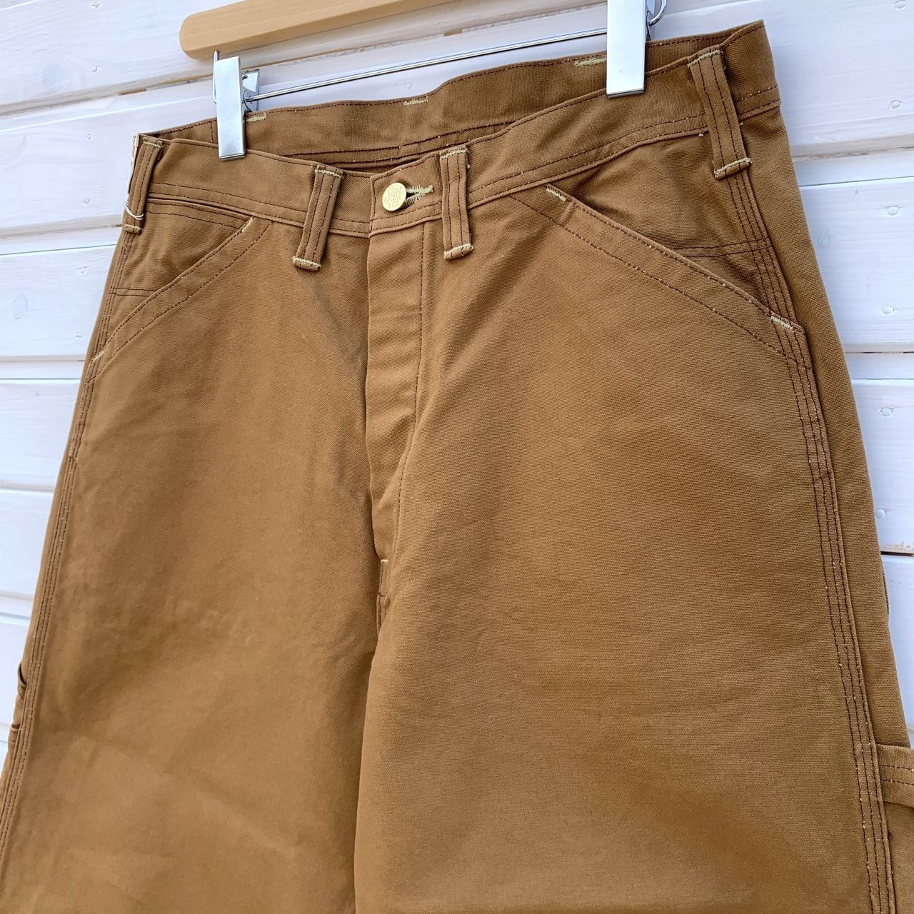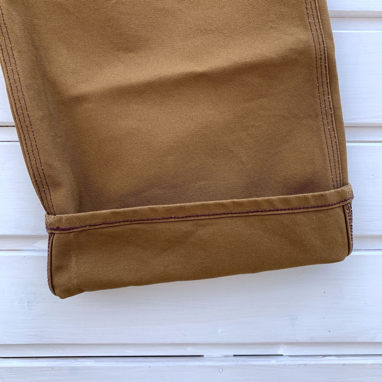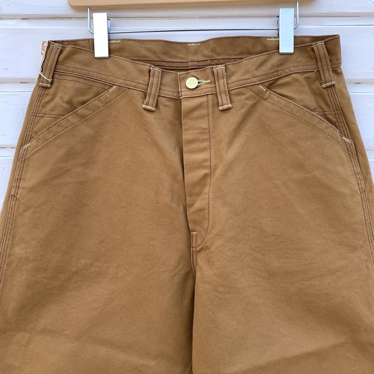 13オンスのブラウンダックを使用した3本針巻き縫い仕様のタフなワークパンツです。