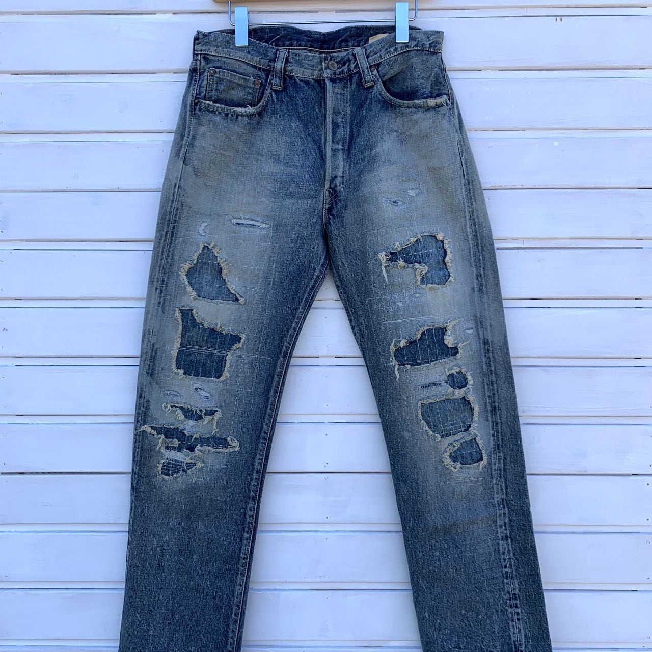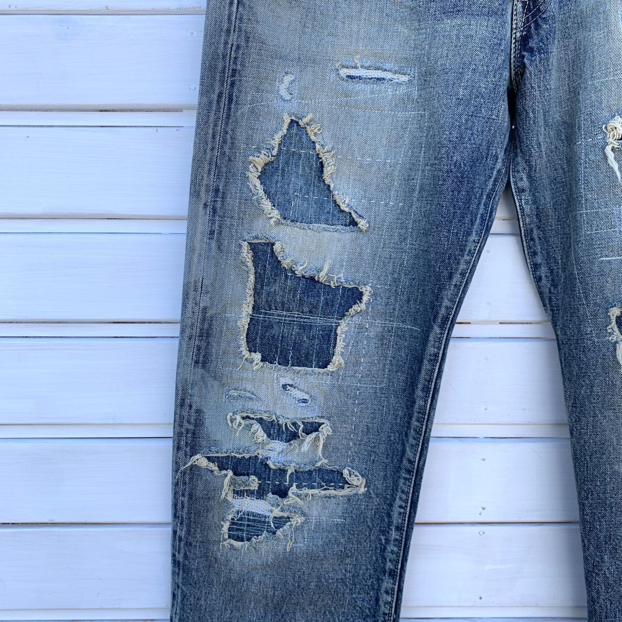 日本の高度なデニム加工技術が注がれた数々のダメージやリペアにより独特な雰囲気の有るジーンズに仕上がっています。