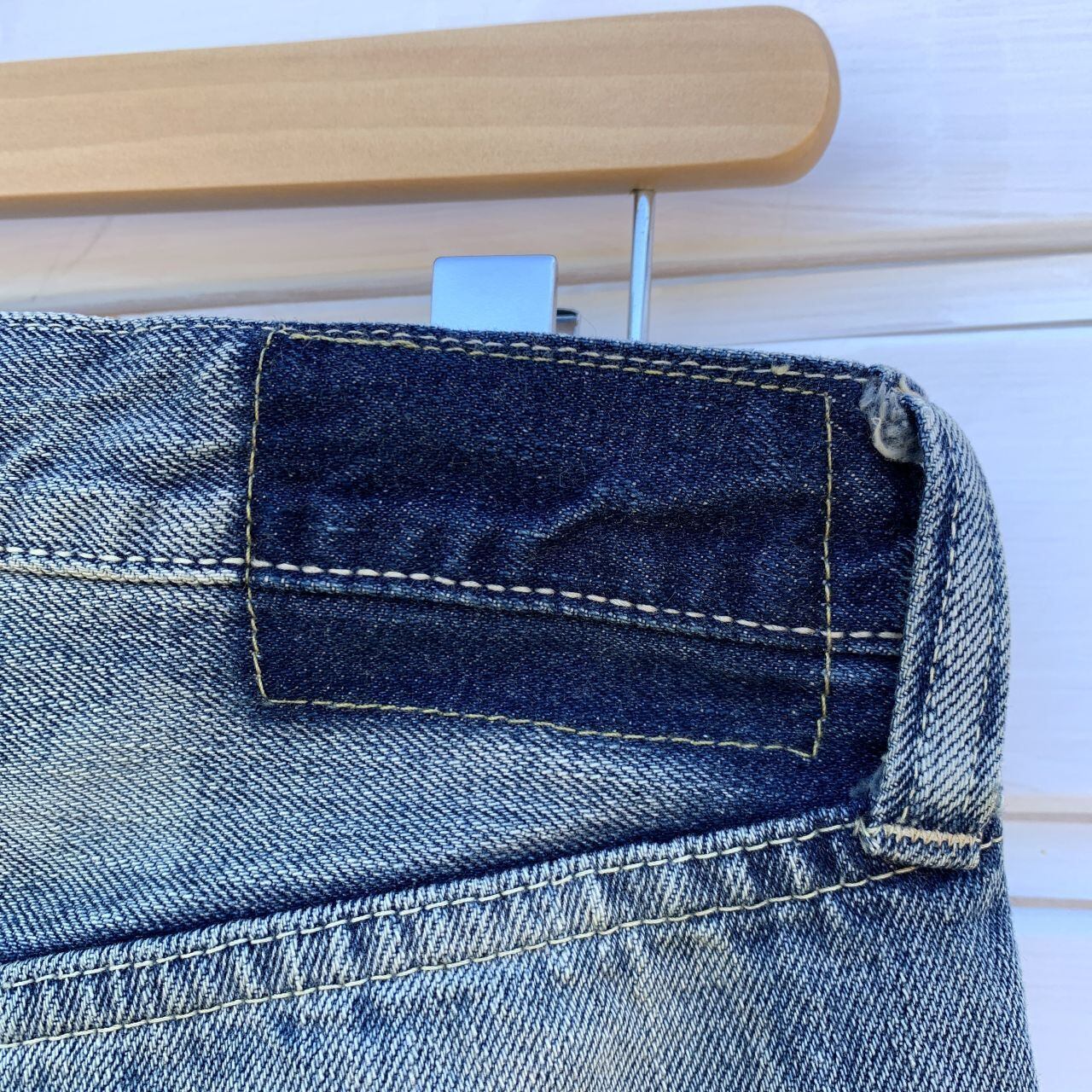 革パッチが付いていた部分はデニムの色が濃く残っています。