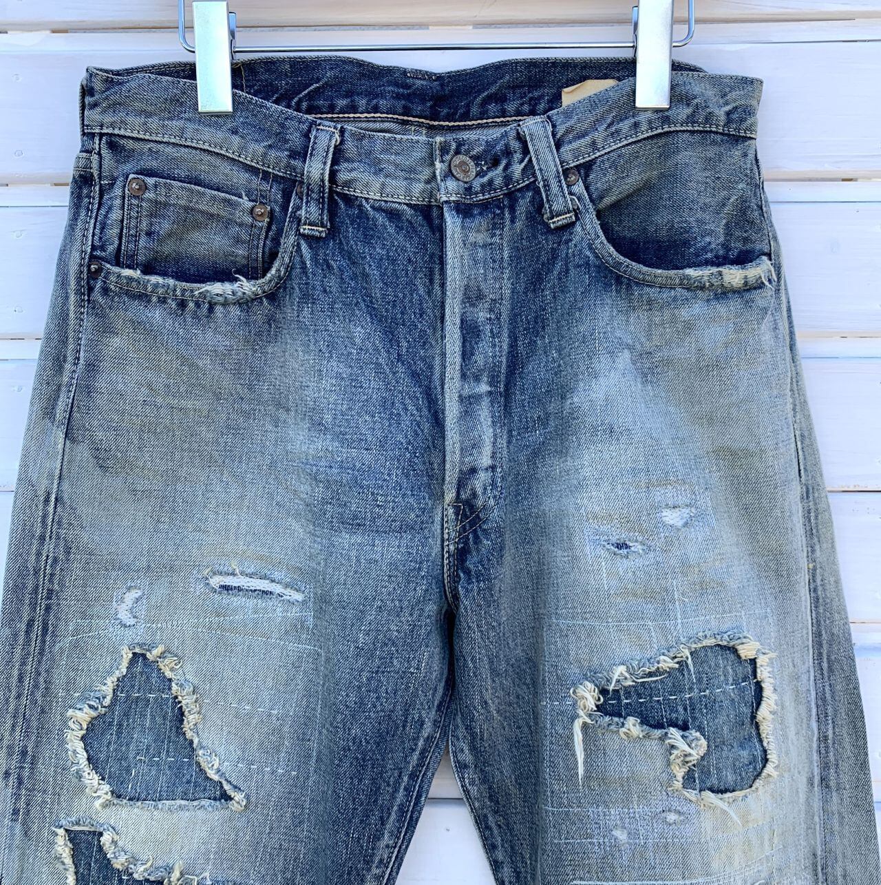 2002年の発売以来SUGAR CANEを代表する定番ジーンズ・1947モデルを大胆にエイジングやダメージを加え、その部分にリペアなど非常に手の込んだ加工を施した商品。