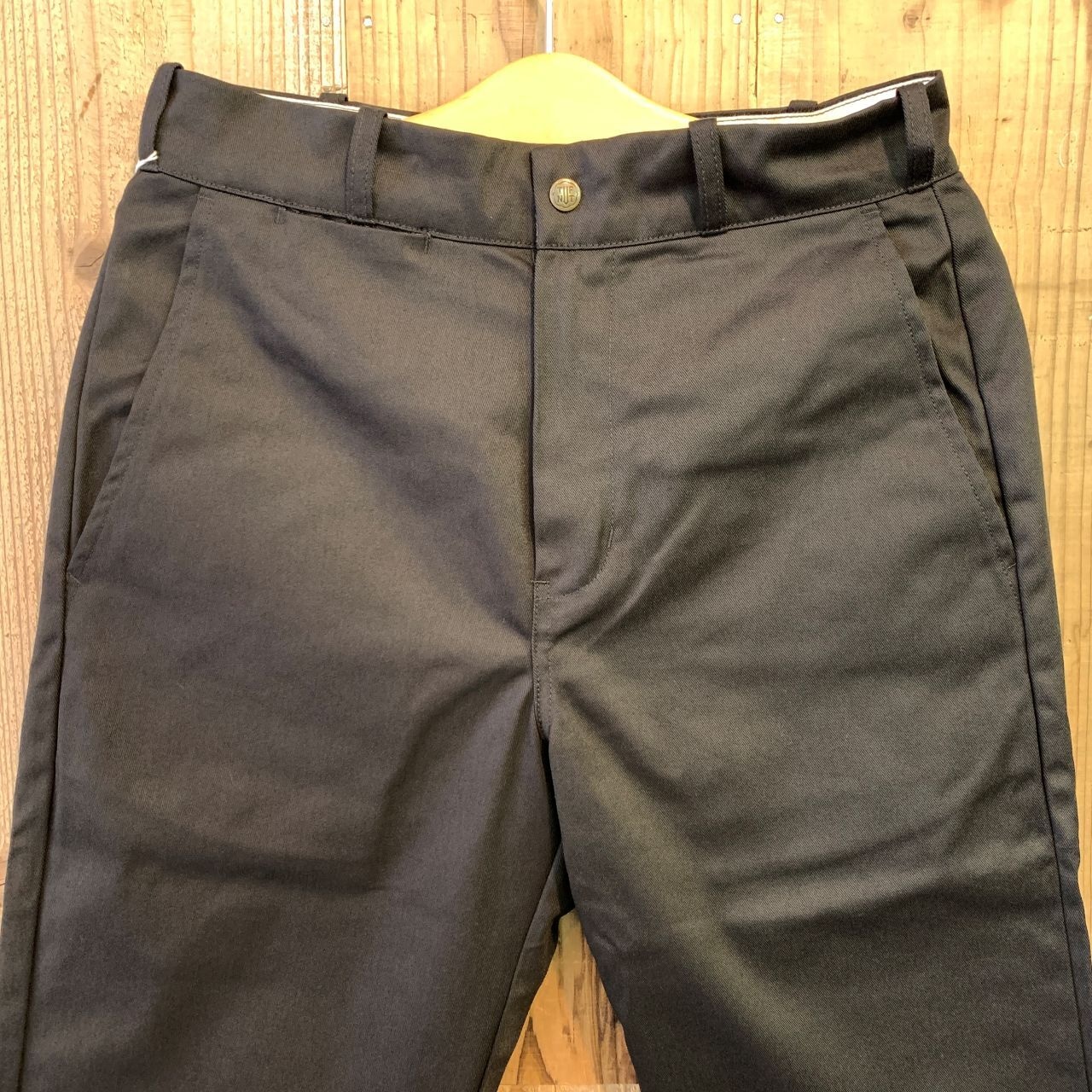 左バックポケットにもブランド名が刻印されたスナップボタンが付いております。