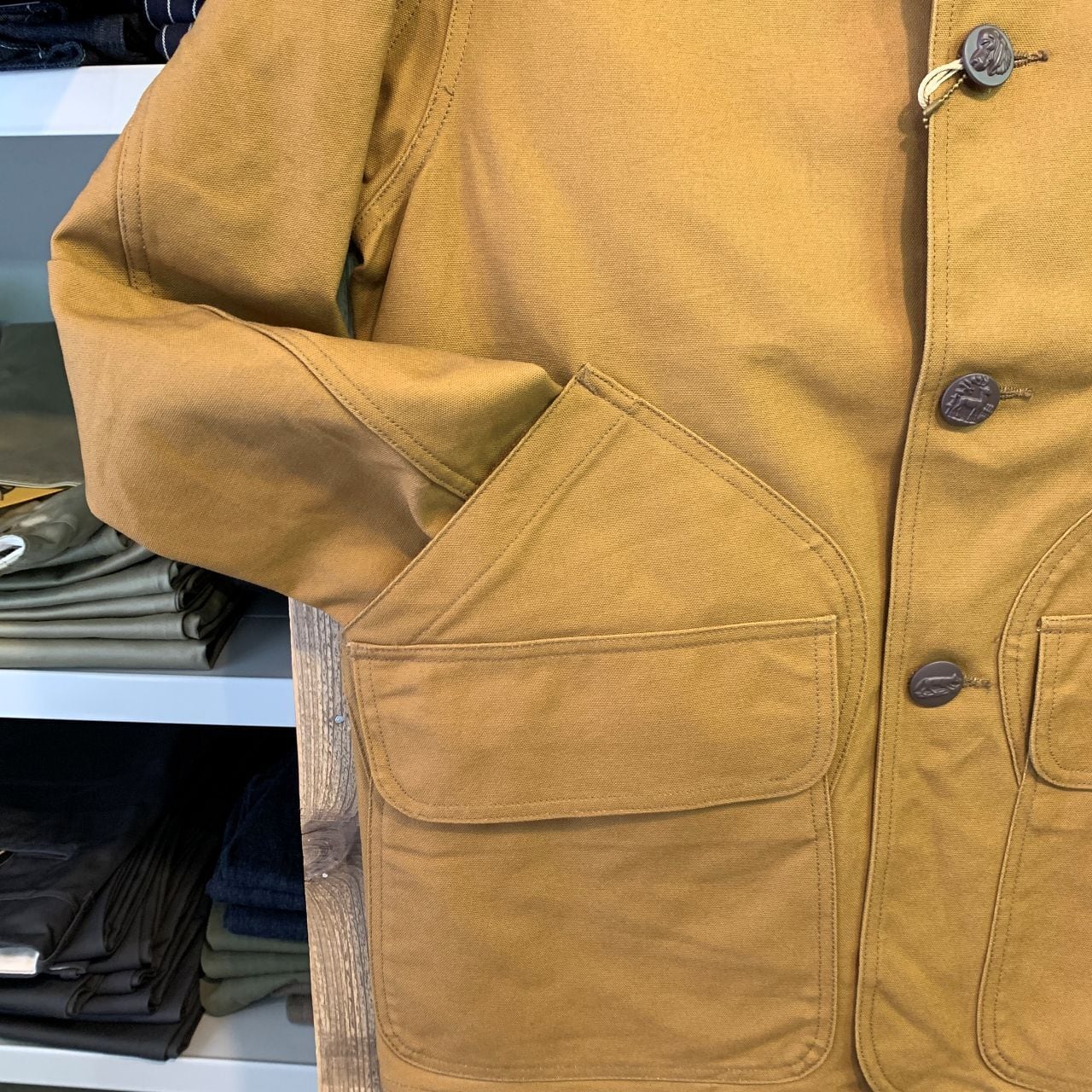 1950年代のヴィンテージを基にした13オンスのブラウンダック生地のハンティングジャケット。