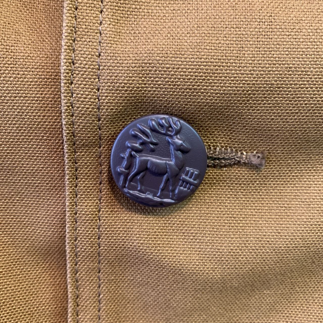 フロントと袖口のボタンはハンティングに関連する動物がモチーフのメタルボタンが付きます。