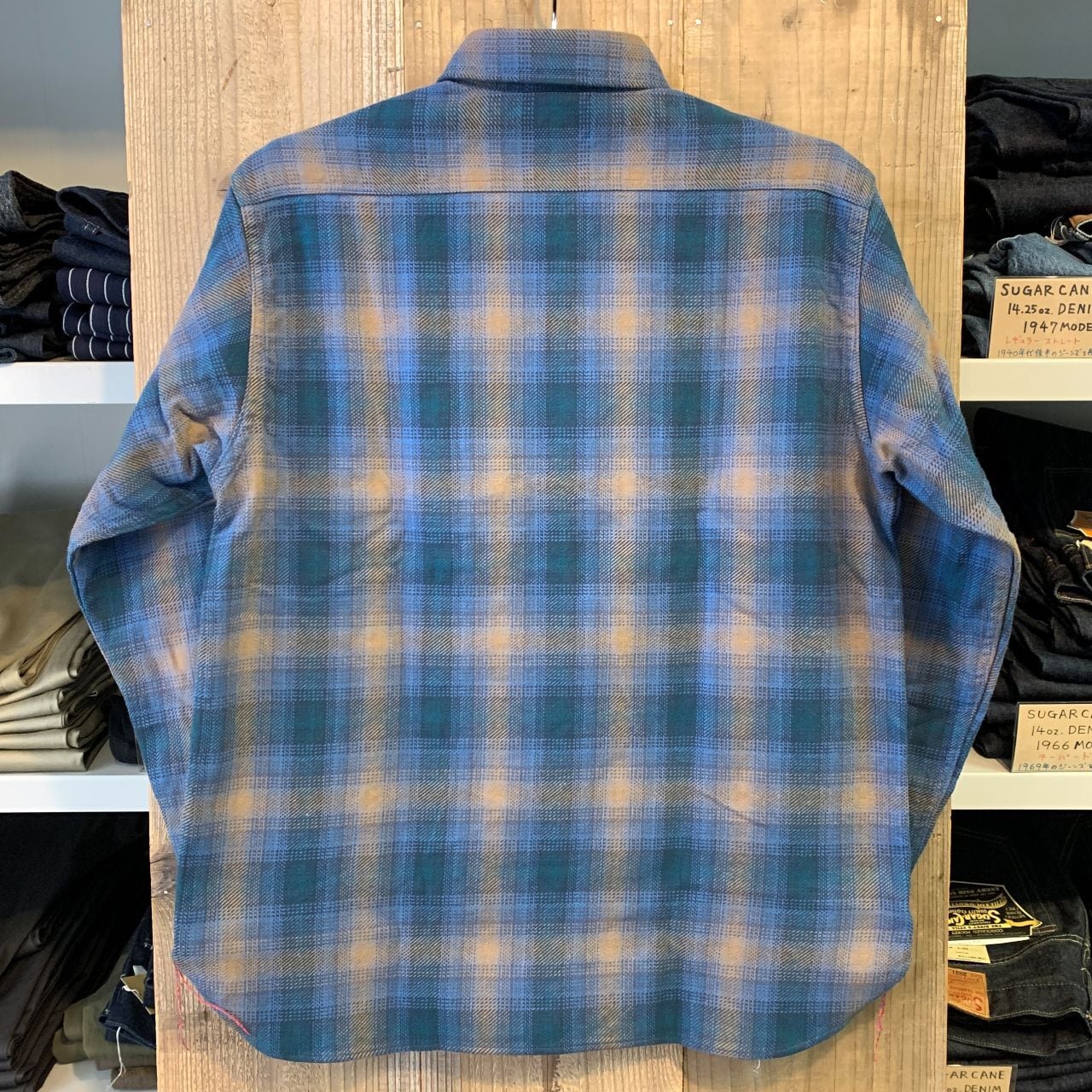 1960年代のTOWNCRAFTのレーヨンシャツから柄を起こしたタテ糸5色×ヨコ糸4色で織られたグラデーションチェックのワークシャツ。