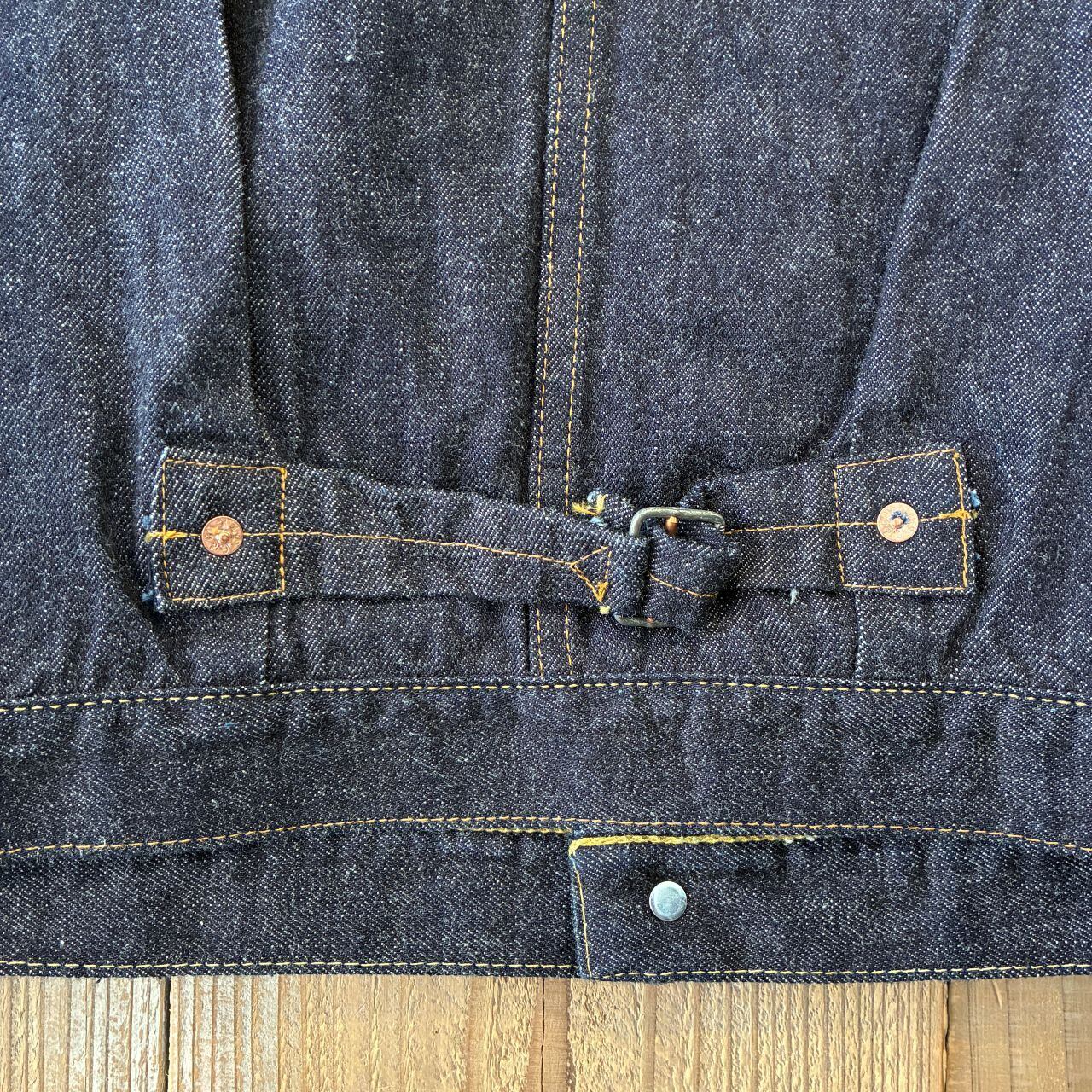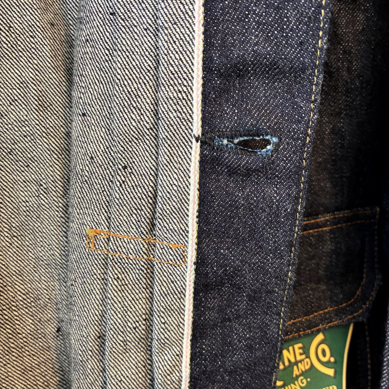 インディゴが濃く、糸のムラ感とタテ糸のネップが強い13オンスのデニムを使用。