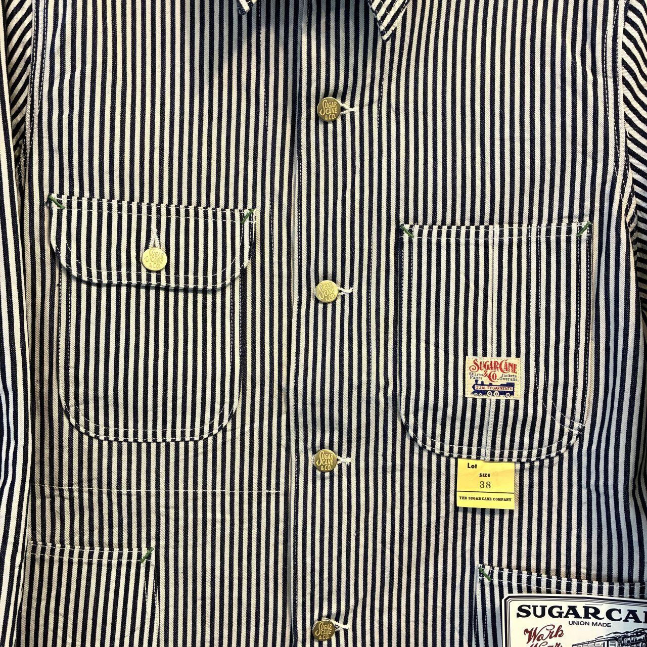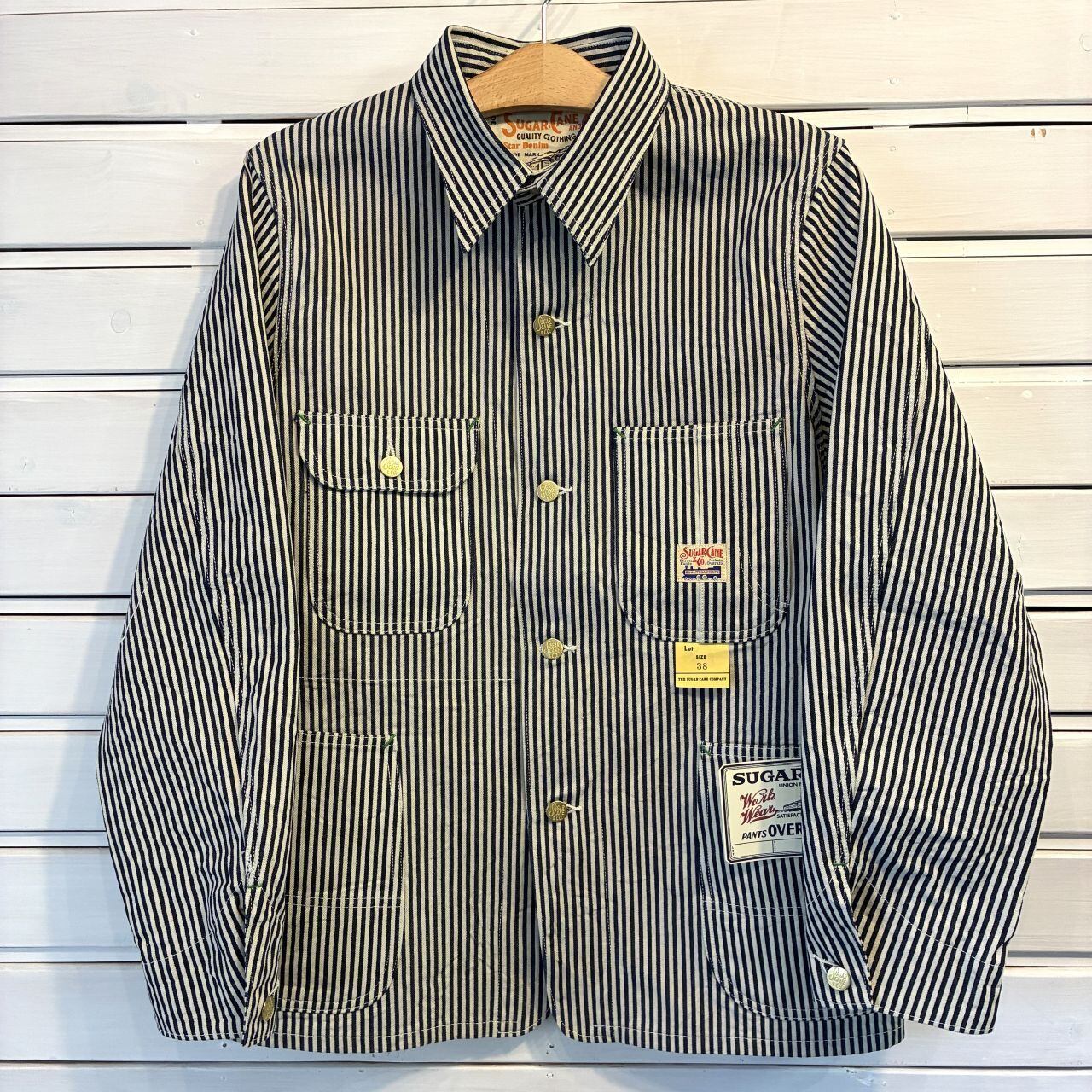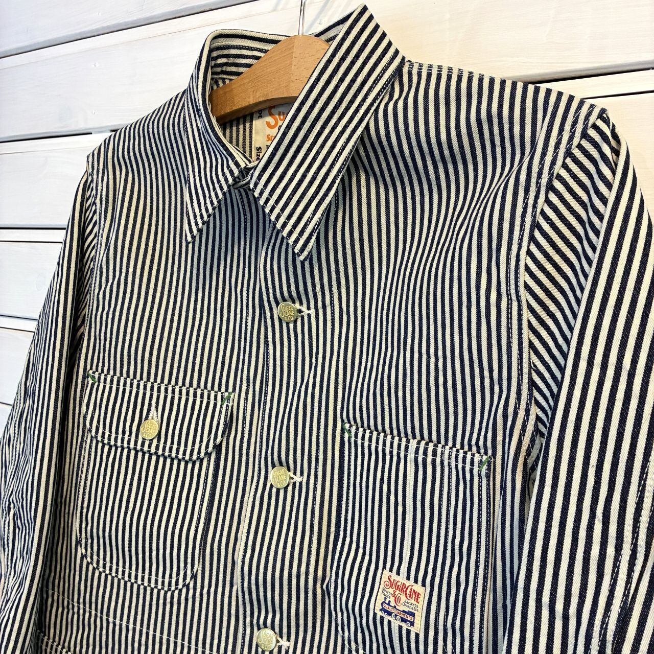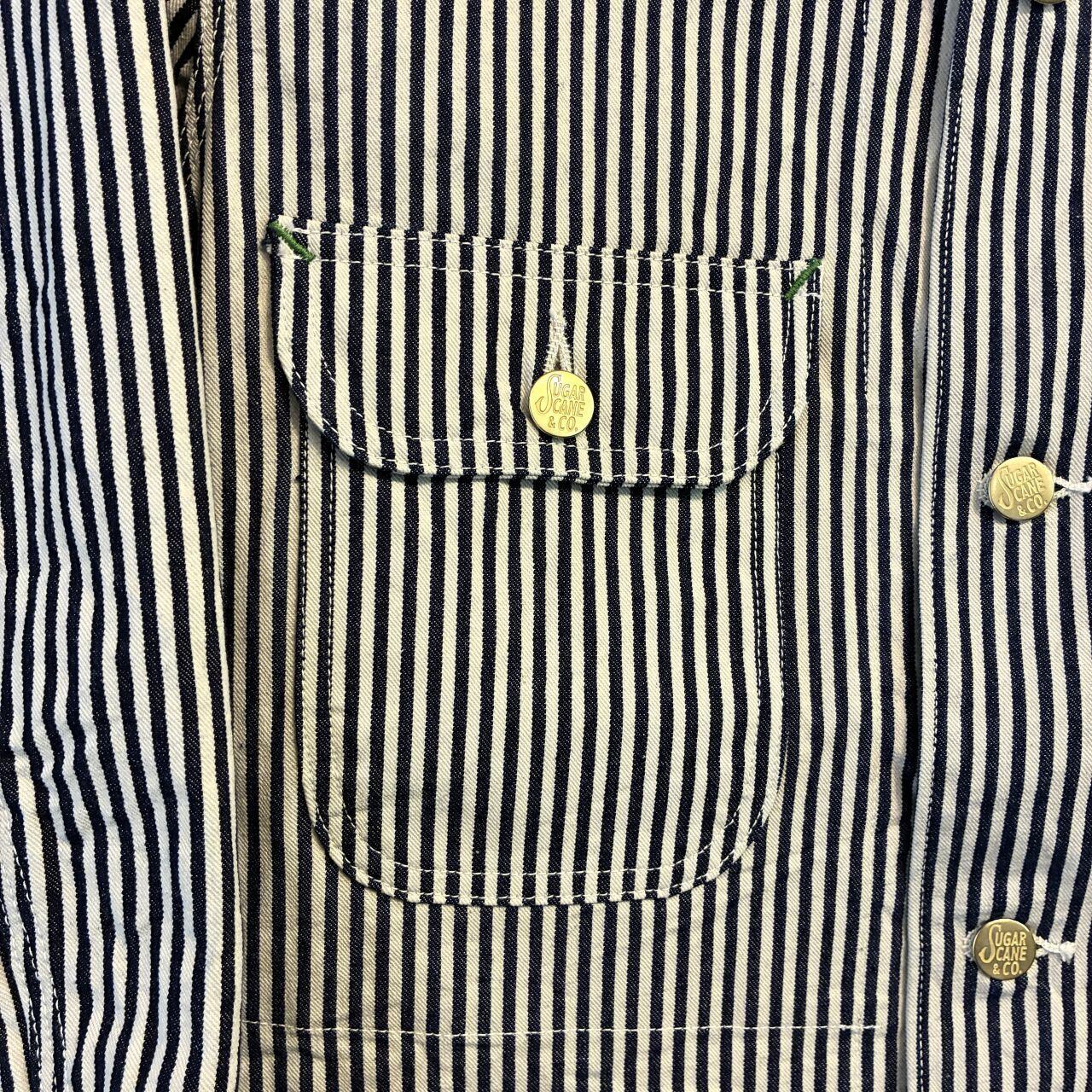 シュガーケーンの定番マテリアルである11オンス・ヒッコリーストライプを使用したワークコート。