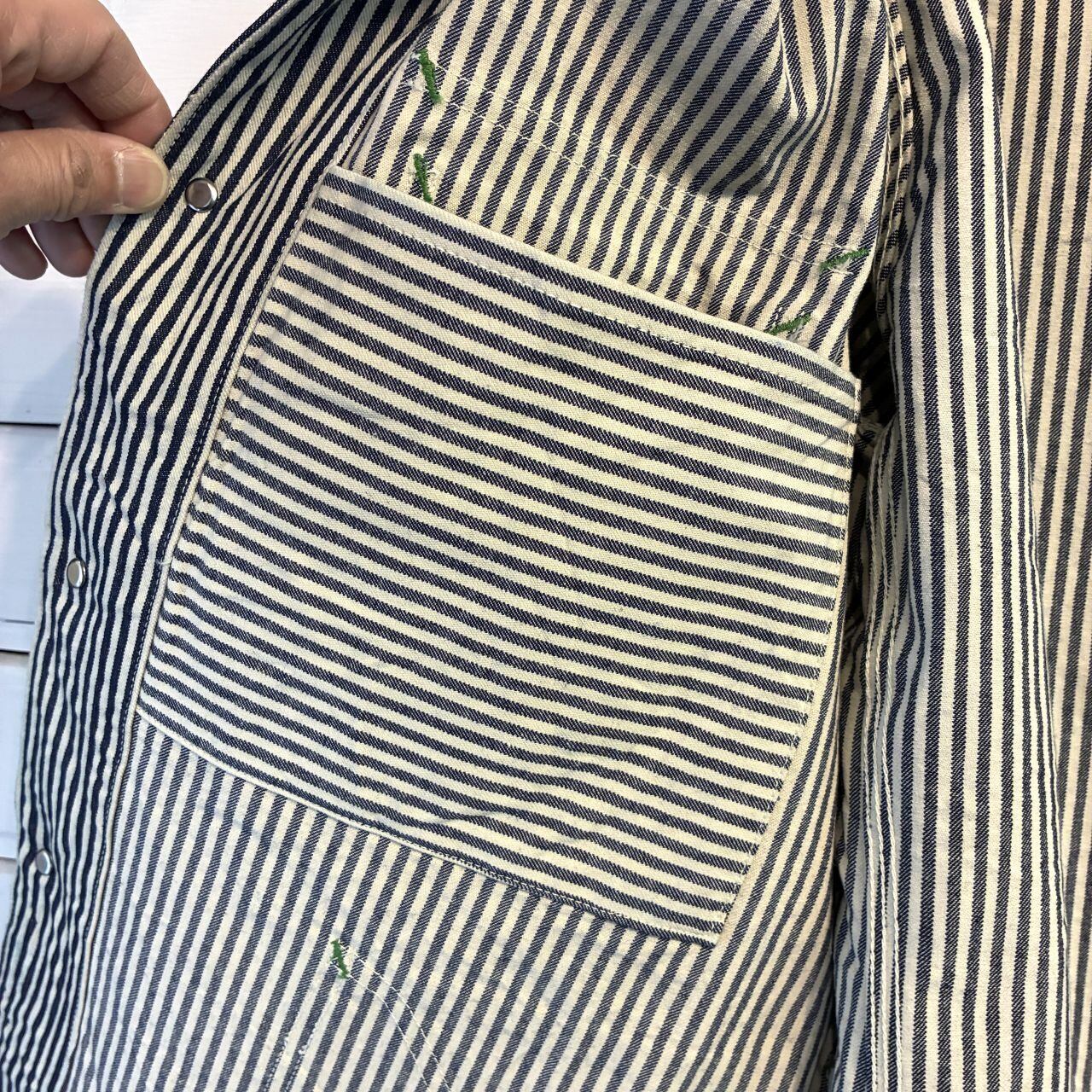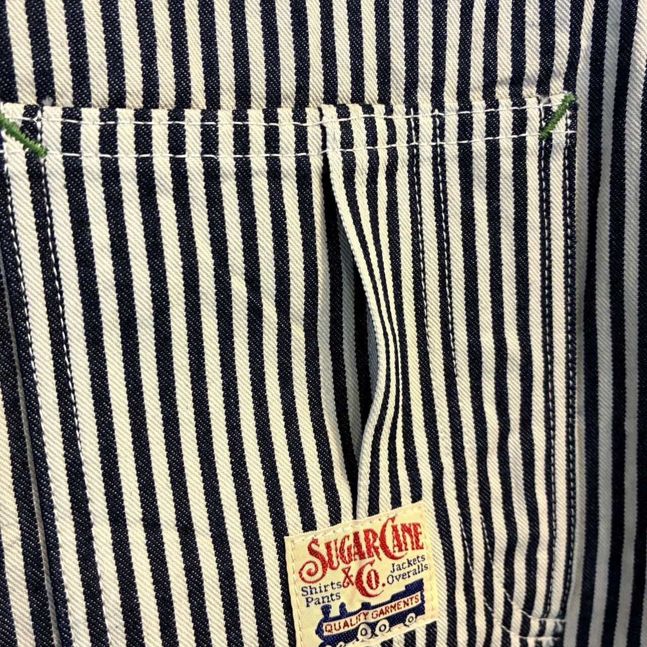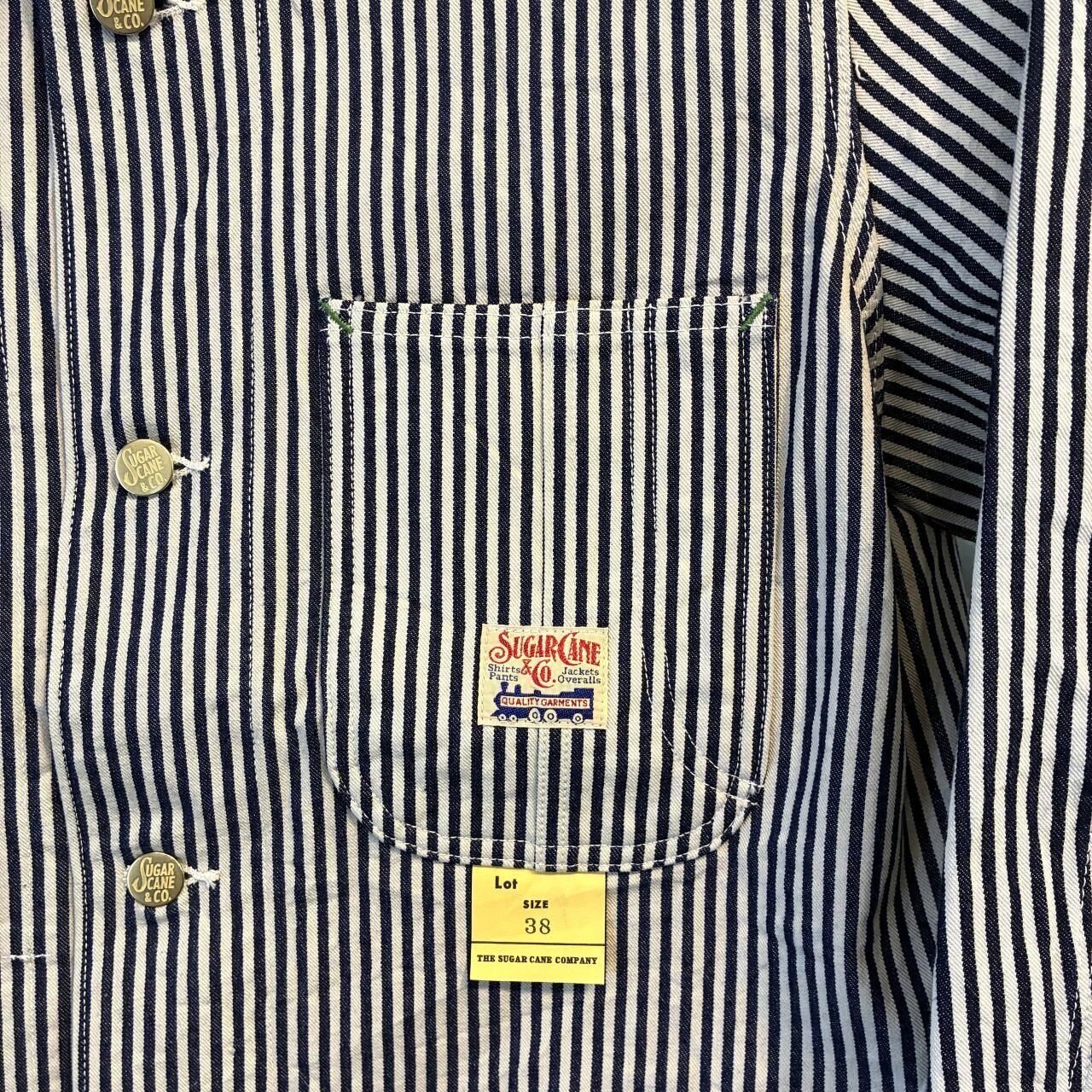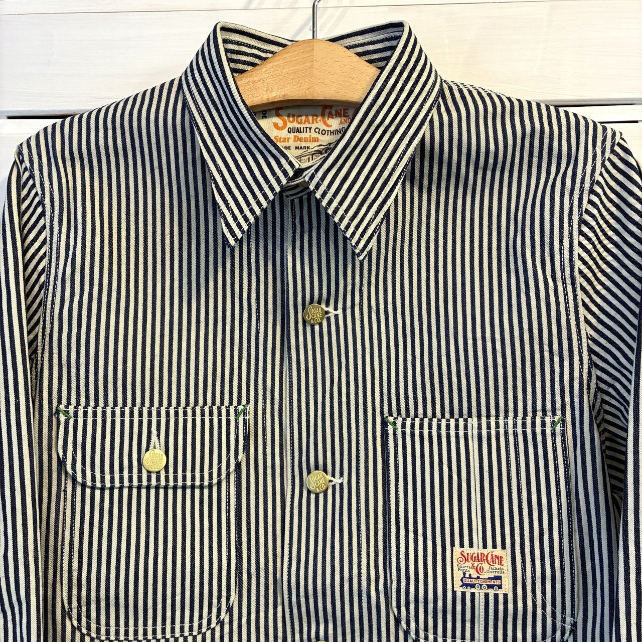 シュガーケーンの定番マテリアルである11オンス・ヒッコリーストライプを使用したワークコート。
