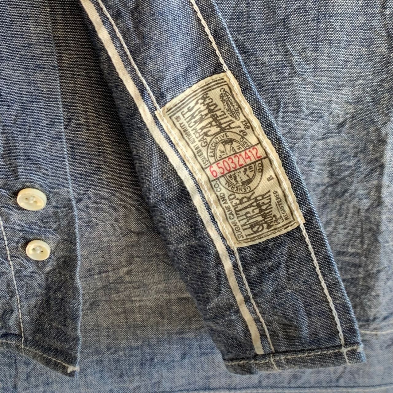 裾脇の空環処理やセルビッジを使用した力布、前立て裏に付けられたユニオンチケットなどワークシャツの仕様ですが、きれいな襟のロール、背中のボックスプリーツ及びハンガーループを備え、ボタンダウンシャツの基本を押さえております。